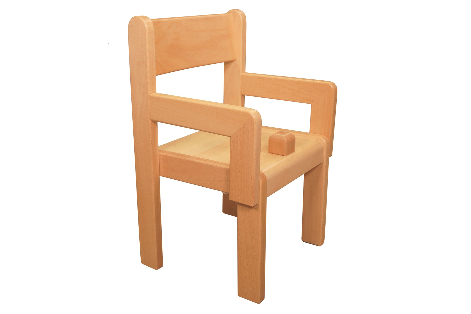 Kinderstuhl mit Armlehnen und mit abnehmbarem Stollen als Rutschstopp.