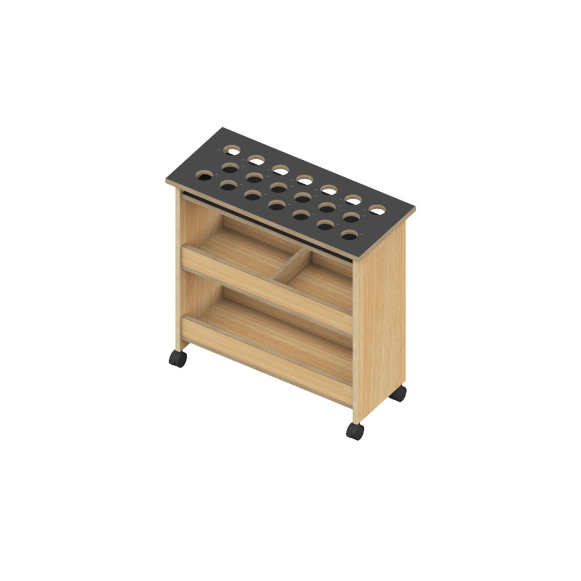 unten 1 Ablage mit Einteilung und 1 Ablage - 1 Ablage ohne Einteilung mit Aufkantung für Farbflaschen