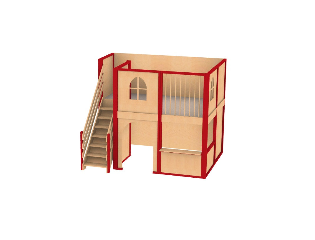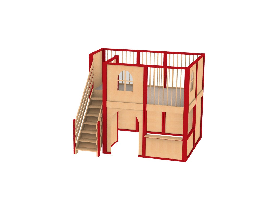 Grundfläche der Spielebene: 273 x 205 cm, Platzbedarf: 250 x 300 cm, Treppenüberstand: 30 cm, Podesthöhe: 135 cm, Gesamthöhe: 236 cm