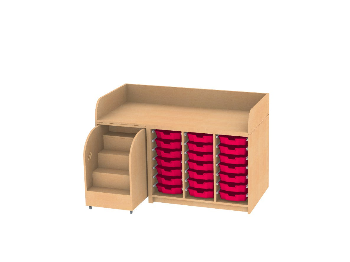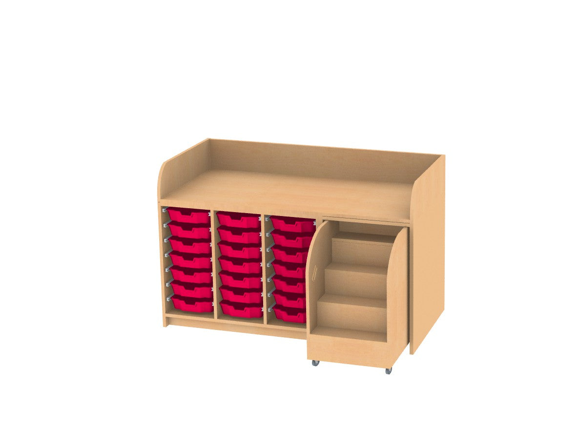 dreiteilig, mit Aufsatz (25 cm hoch), links oder rechts für 3 x 7 Kunststoffschübe (CS 1), Dekor Buche,